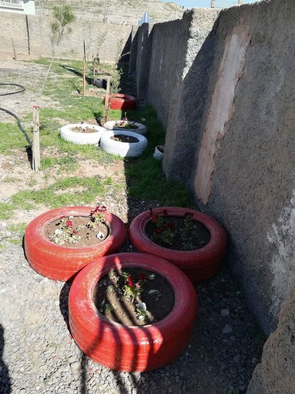 Boyanarak hazırlanan çiçek saksılarımızın içine çiçekleri dikiyoruz.